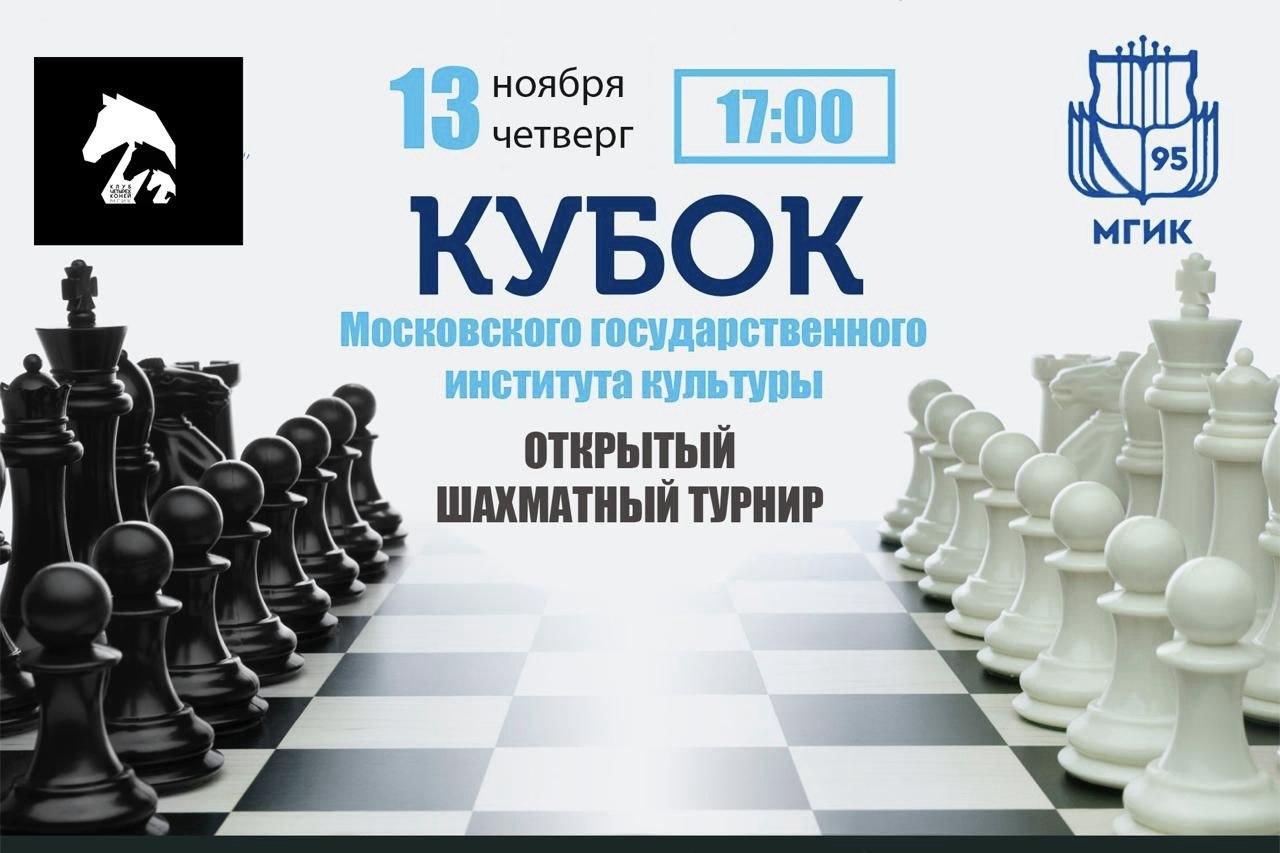 13 ноября 2025 года в 17:00 в рамках празднования 95-летия Московского государственного института культуры состоится открытый шахматный турнир «Кубок МГИК».